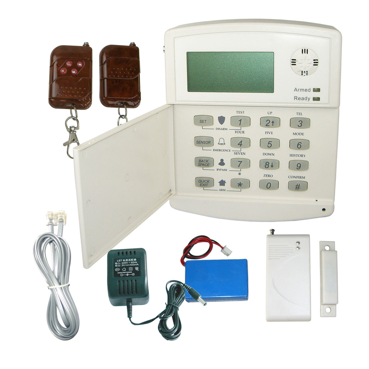标准配置:主机1台+门磁1付+遥控器2个+电话线1条+内置警号1个+内置锂电池+普通电源1个