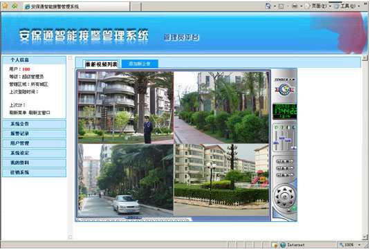“E网打尽”智能接警管理系统网络运营版的平台,能够方便准确地对用户防盗报警器所发出的告警信息进行识别和处理,并将警情通过语音系统通知到用户手机、座机、小灵通等通讯设备。如果用户安装了一元利生产的网络视频与防盗报警一体机电话看家系统,那么,用户接到告警电话后,可以立即凭密码登陆视频服务器,适时远程观看家里发生的一切,真正做到有了警情想看就看,同时改系统支持远程回放,也就是说用户在接警的同时,如果不能及时的通过网络观看家里的动向,那么在报警的同时,家里的视频图像远程存储在“E网打尽”智能系统里,用户可以远程在服务器上把监控录像随时调出来查阅。