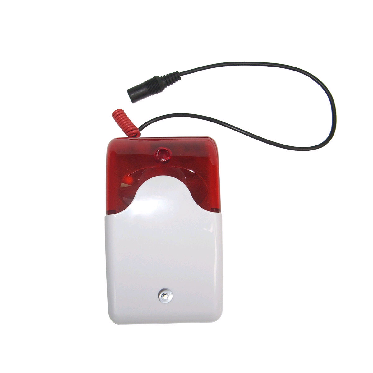 无线声光警号:用于无线声光警号时,自带适配器,既可与主机配套使用,也可以与探头配套。当与主机配套使用时,它们与主机间是无线连接,可以安装于主机接收范围的室内。当于探头配套使用时,自成一体,当其接收到从探头发出的报警信号后,现场报警。其发出的声响将和主机内的讯响器所发出的声响一致。